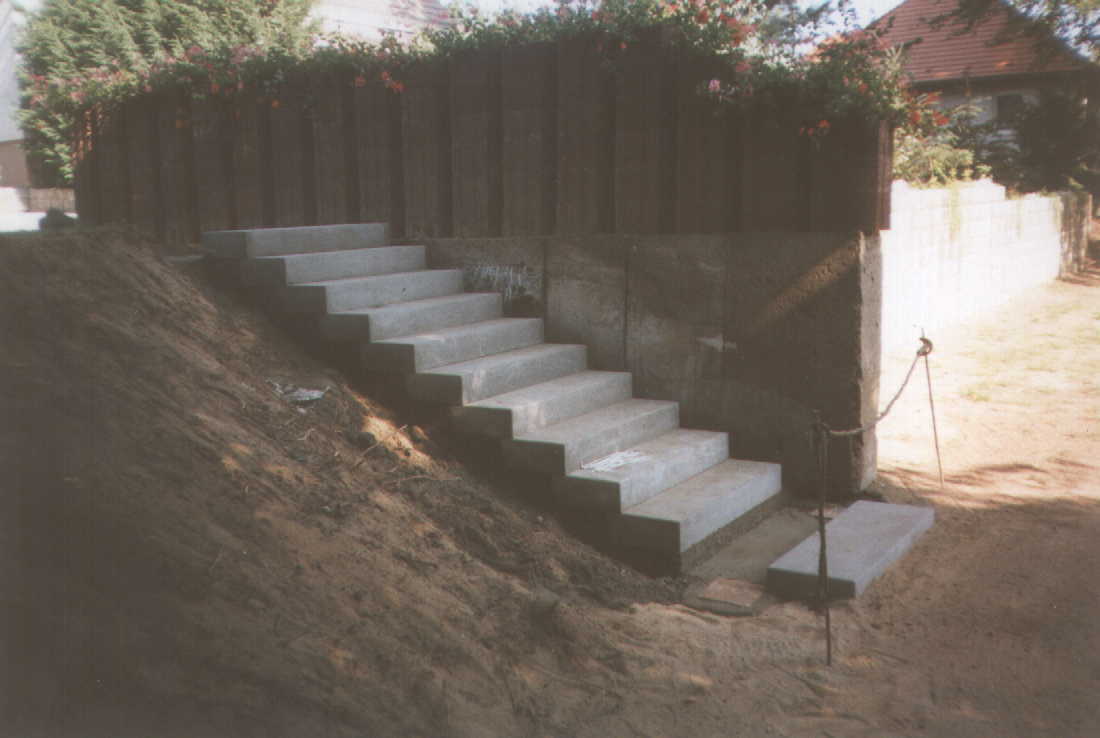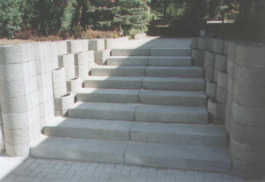 Betonblockstufen der Firma “Krautz-Beton” in Verbindung mit Betonpflanzkübeln