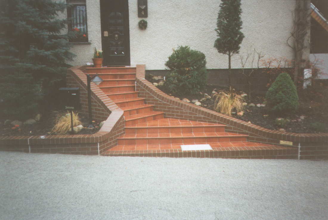 Treppe aus Narsdorfer Klinker “Brasil”, Stufen aus “Crinitz “Florentiner” in Spremberg “Am Pilz”.