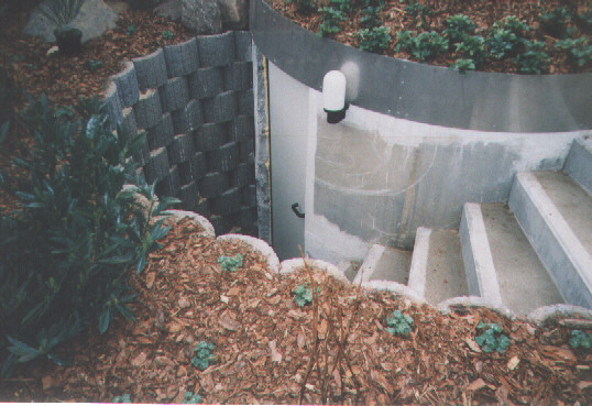 In den Keller führt eine Wendeltreppe aus Betonsteinborden.